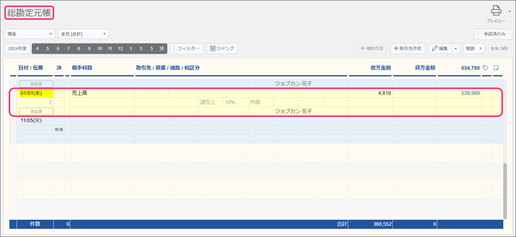 詳しくは、「総勘定元帳で取引を修正する」「補助元帳で取引を修正する」をご覧ください。
