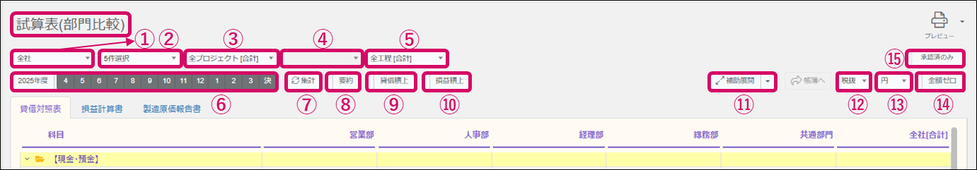 ※部門が設定されていない場合、試算表(部門比較)は利用できません。