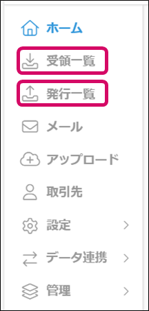 1. メニューの[受領一覧]または[発行一覧]をクリックします。