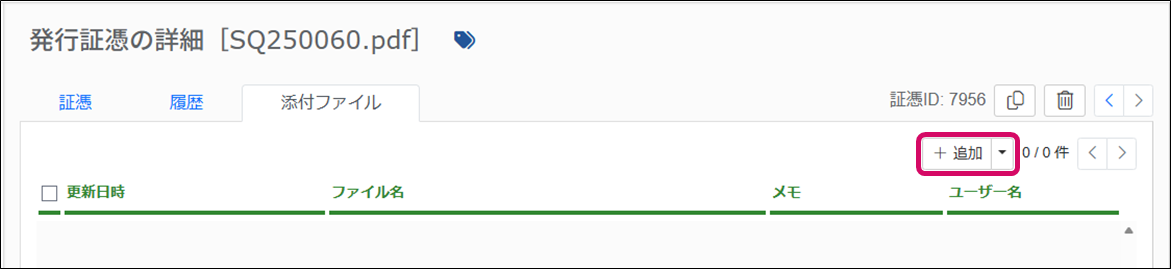 6. 必要に応じてメモ欄を入力し、[追加] ボタンをクリックします。添付ファイル一覧に追加されます。