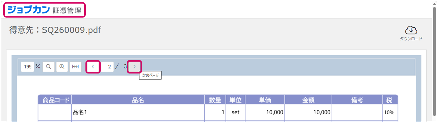 6. [プレビュー] ボタンをクリックすると、「証憑管理」のプレビュー画面が表示されます。これにより、2ページ目以降の内容も確認することができます。