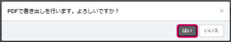 5. PDF書き出し処理のダイアログが表示されます。右下の[はい]をクリックします。