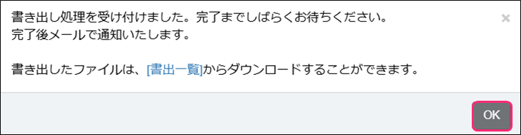7. 書き出し処理受付のが表示されます。画面右下の[OK]をクリックして完了です。