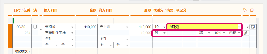 6. 必要に応じて、[摘要]や[税区分]を修正します。