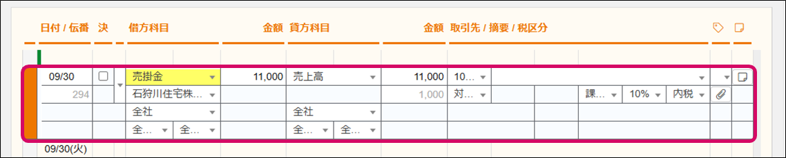 3. 修正したい仕訳を選択してから[Enter]キーを押すか、ダブルクリックし、編集状態にします。