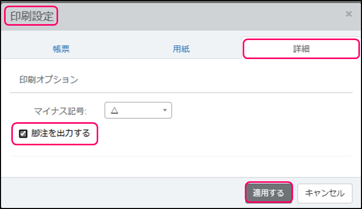 ※必要に応じて、画面右上[脚注の設定]をクリックし、脚注を入力します。