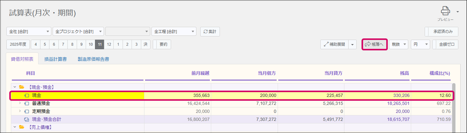 ※入力内容を試算表の画面で直接修正することはできません。帳簿で修正する必要があります。