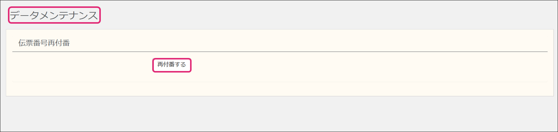メンテナンスでは伝票番号の再付番を行うことができます。