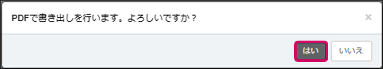 6. PDF書き出し処理のダイアログが表示されるので、画面右下の[はい]をクリックします。