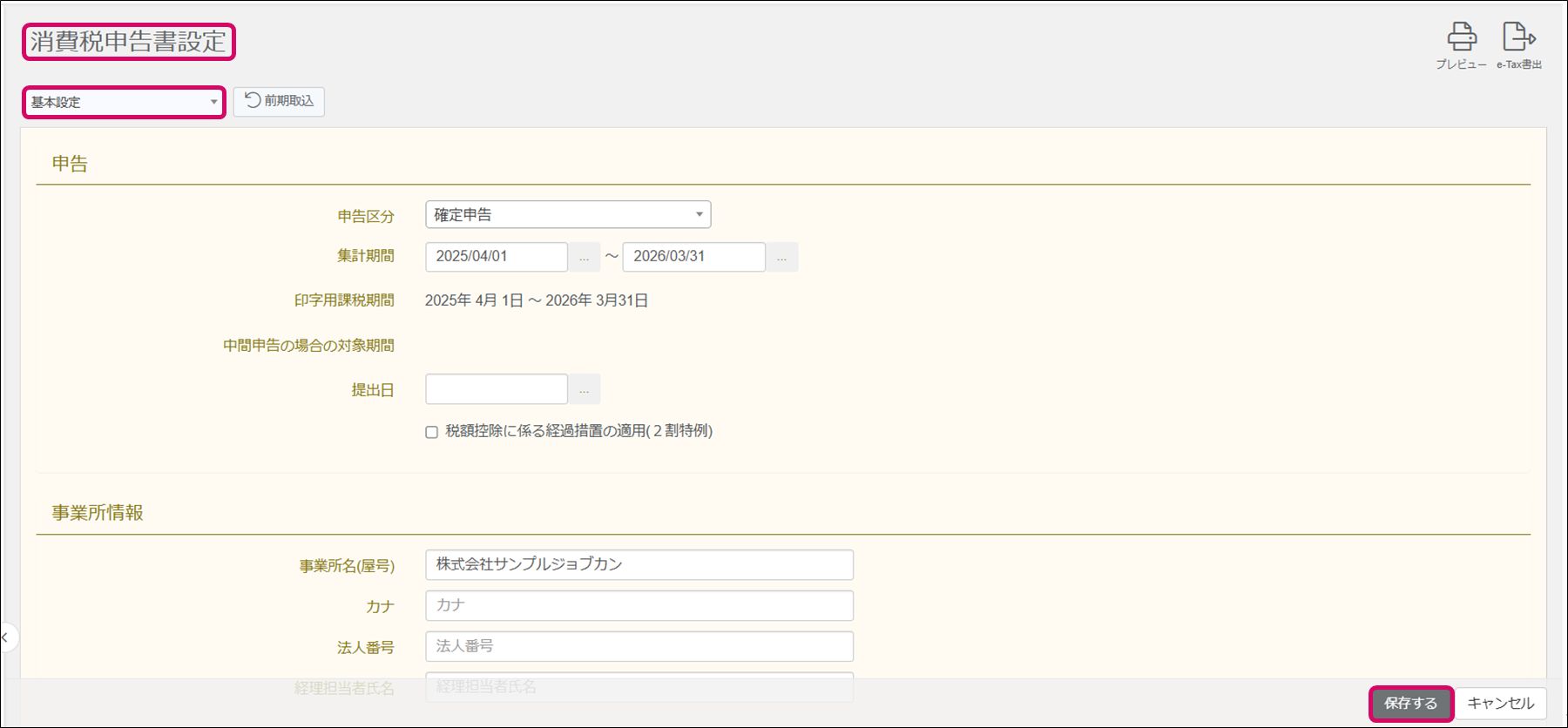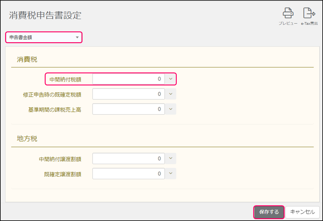 消費税申告書設定を行う