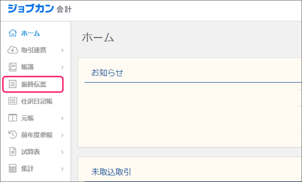 2. [振替伝票]画面が表示されます。印刷を行いたい伝票の日付をクリックします。