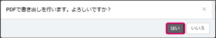 5. PDF書き出し処理のダイアログが表示されるので、画面右下の[はい]をクリックします。