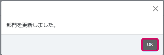4. [部門を更新しました]のメッセージが表示されるので、[OK]をクリックします。