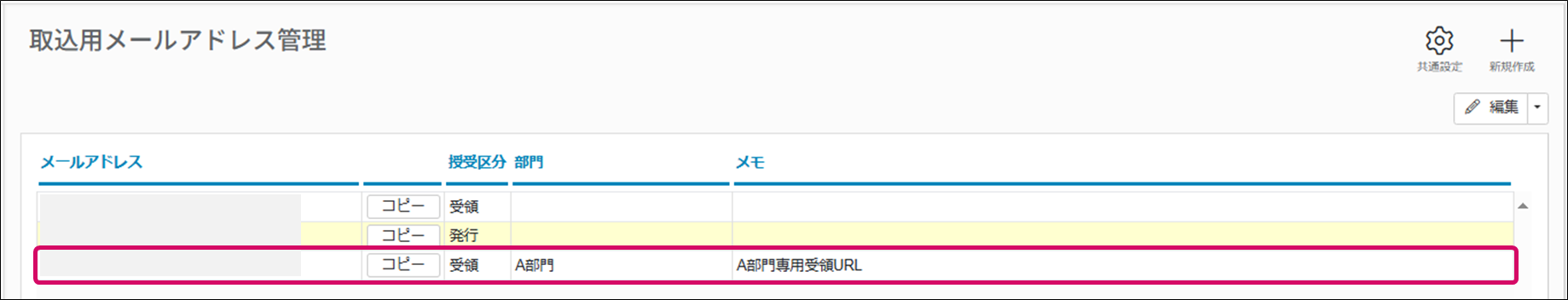 ・取込用メールアドレス(受領)