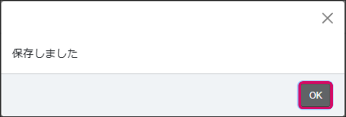 4.「保存しました」のメッセージが表示されるので、[OK]をクリックします。