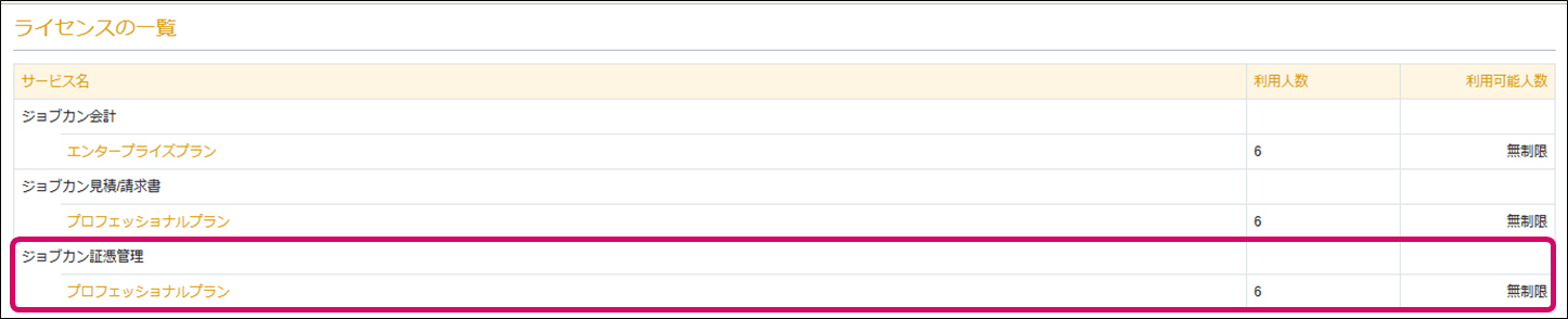 ジョブカン証憑管理の画面上で、ご利用いただいているプランの確認をすることが可能です。