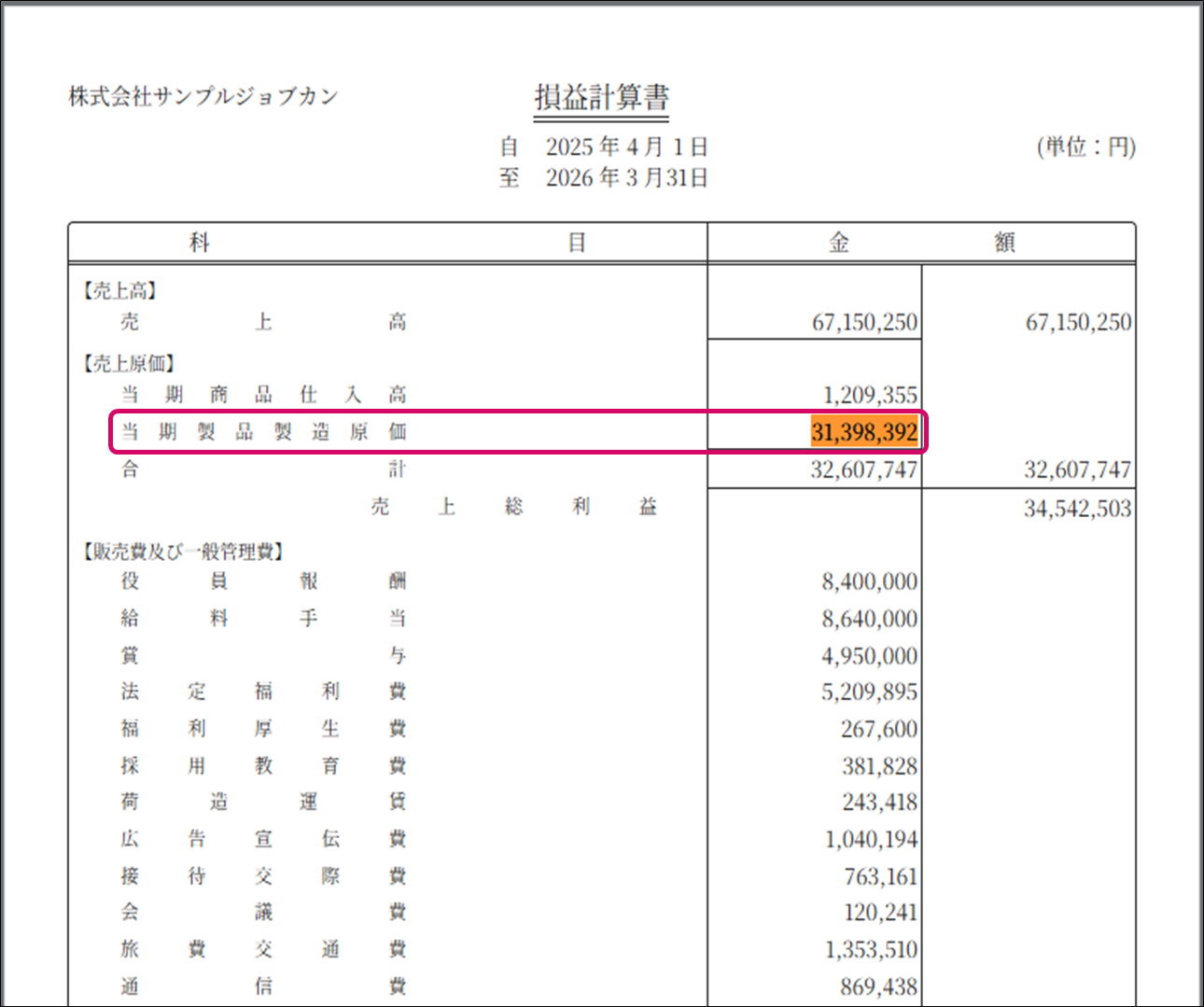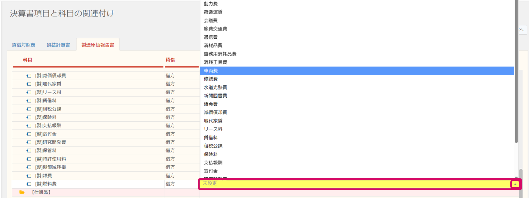 | [製]期末材料 | 製造原価報告書 > 材料費 > (期末材料棚卸)> 期末材料棚卸高 |