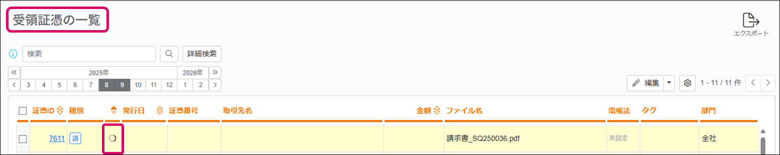 ※証憑一覧でAI-OCRの[待機(実行)中]のマークが表示されます。