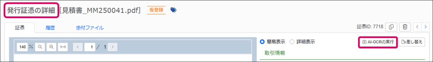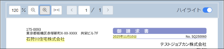 ・ 証憑詳細画面で、読み取った箇所がハイライト表示されます。