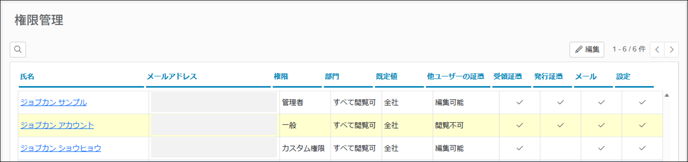 ジョブカン証憑管理の権限を変更する